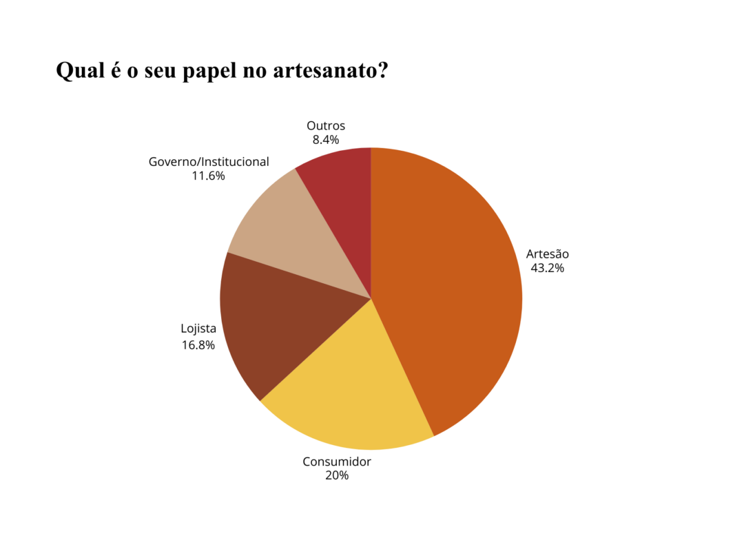 Para compreender melhor esse cenário, o projeto Artiz, iniciativa da ONG Artesol para o comércio justo, realizou, entre 14 e 31 de outubro de 2025, uma pesquisa com a participação de 95 respondentes, entre artesãos (43%), consumidores (20%), lojistas (17%), representantes institucionais ou governamentais (12%) e outros (8%), distribuídos por 20 unidades federativas de todas as regiões do país.