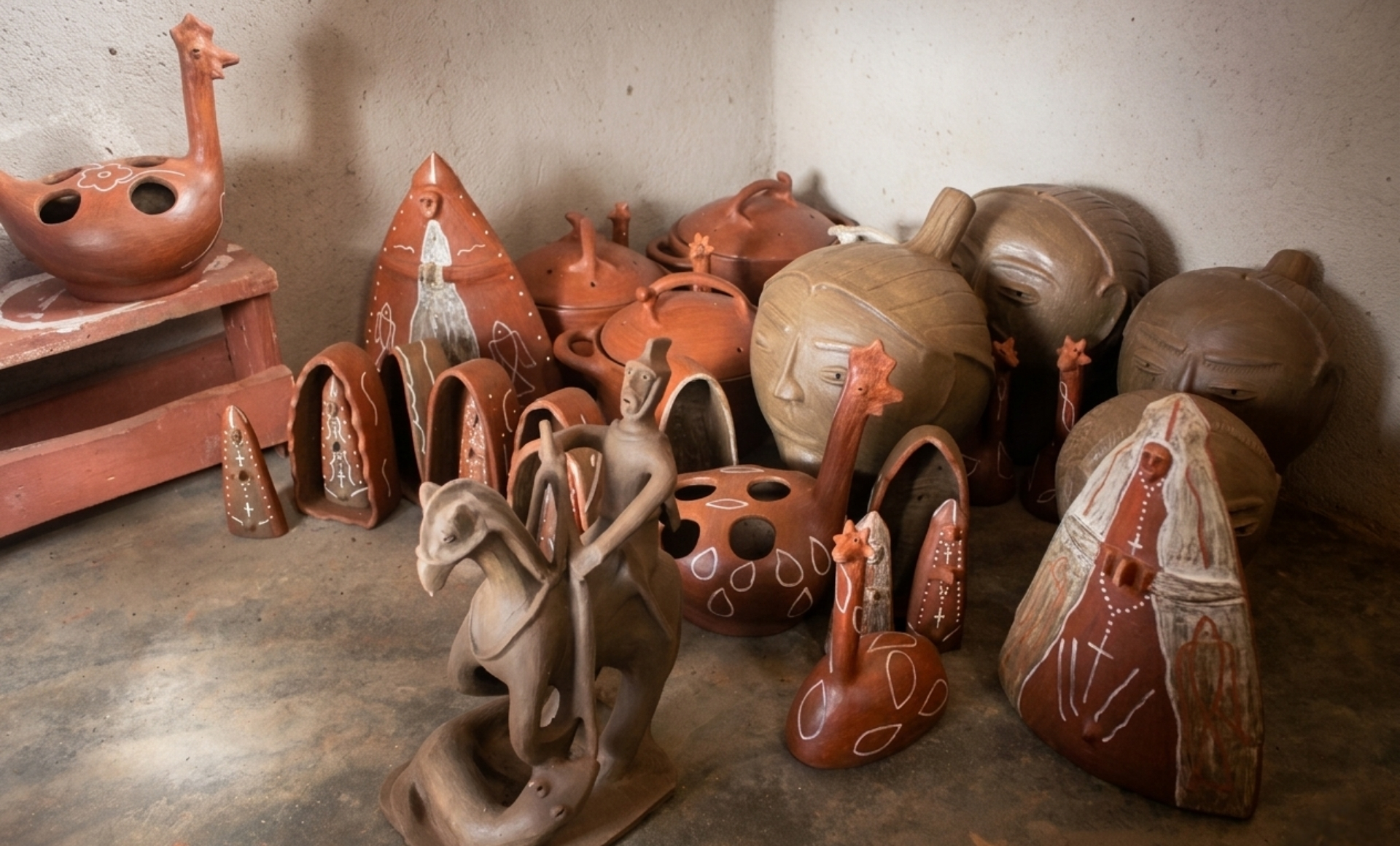 Nesta mostra, o sagrado não se apresenta como abstração distante, mas como presença cotidiana. É barro que vira santo, linha que vira promessa, casa que vira abrigo. É o fazer que cuida, alimenta, guarda e celebra. É o artesanato como território onde fé, cultura e vida comum se encontram — e onde as mãos continuam a ensinar o que a palavra sozinha não alcança.