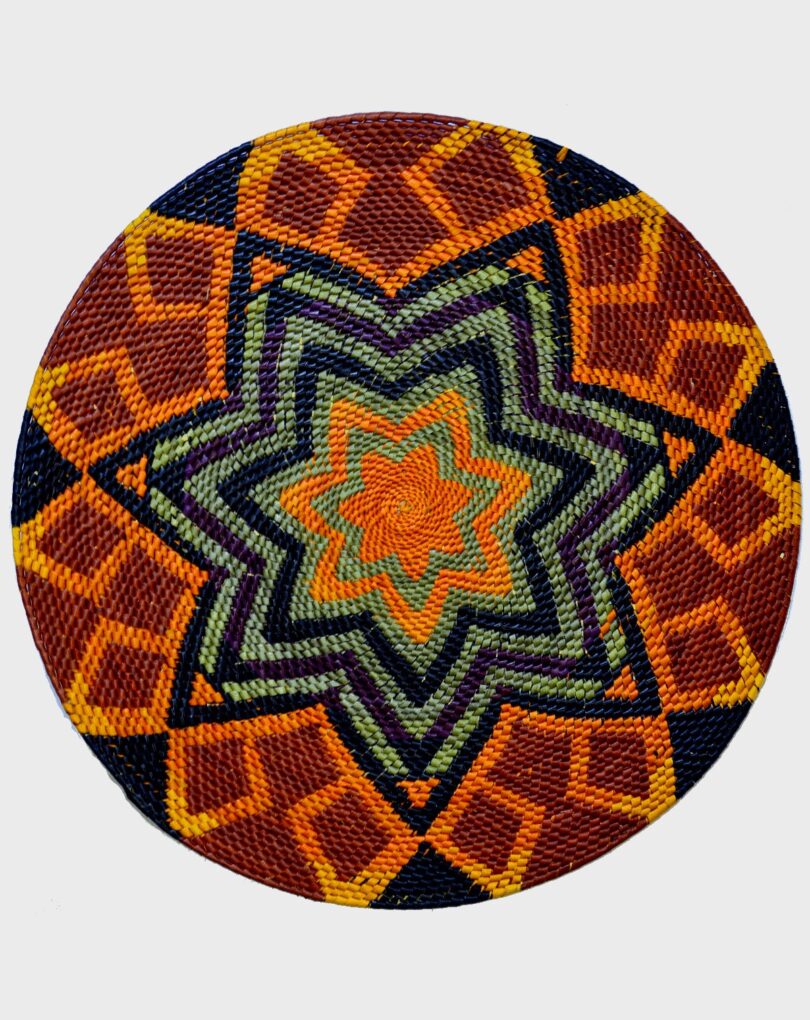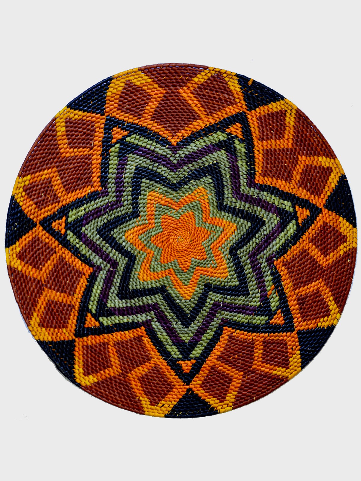 A técnica de trançado de palha da Turiarte é passada de geração em geração em comunidades amazônicas às margens do Rio Arapiuns. É das folhas do tucumã, tipo de palmeira bastante encontrada no Pará, que os artesãos extraem a fibra usada para trançar cestos, mandalas, bolsas, colares vasos, baús com desenhos geométricos de estilo próprio e cores vibrantes. Atenção: produto com variações, após a compra entraremos em contato via WhatsApp para confirmar sua escolha. [Cód. 3372]