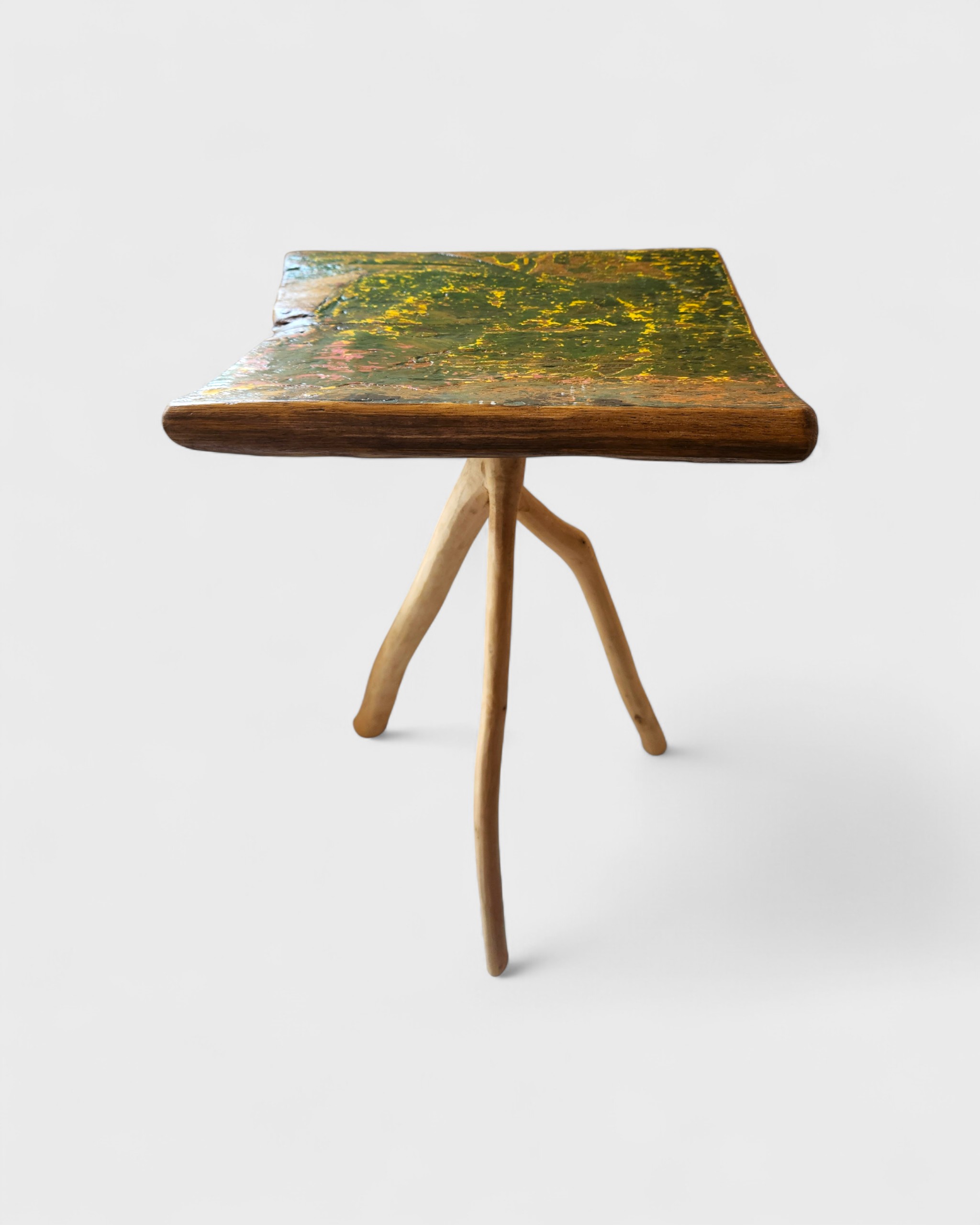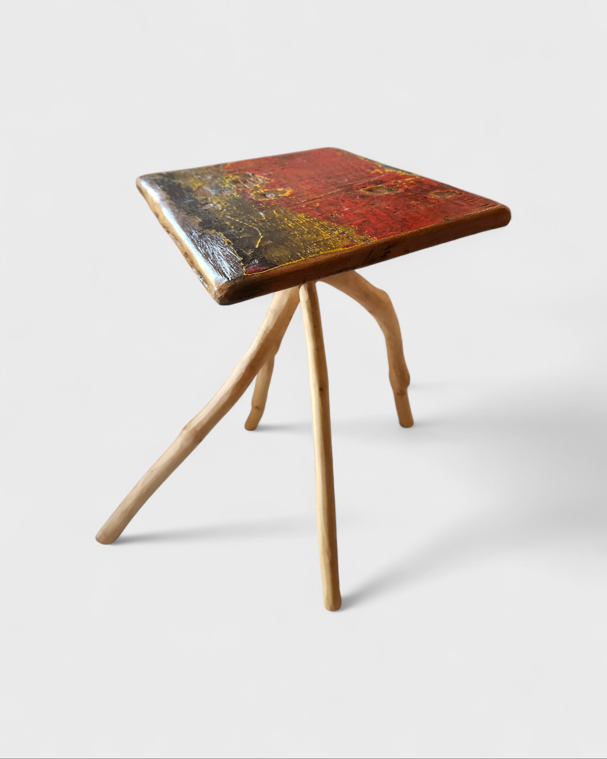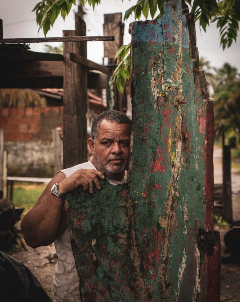Bancos que revelam a força da natureza em sua forma bruta e orgânica, são esculpidos em madeira reaproveitada de canoas. O tampo irregular repousa sobre pernas que lembram raízes e expressam o gesto manual do criador e o diálogo entre floresta, ofício e design. [Cód. 3271]