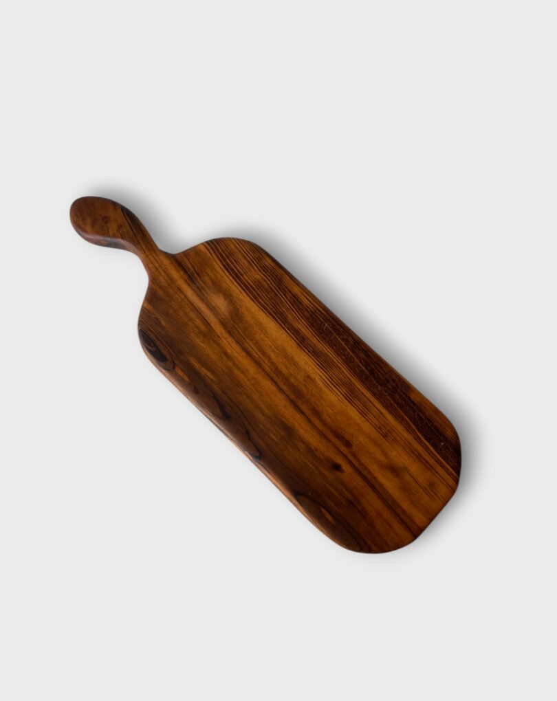 Gamela em madeira roxinho feita por José de Sena Cabral, artesão de Macapá (AP). Esculpida em madeira nobre amazônica de tom naturalmente violeta — encontrada apenas nesta região do mundo — revela a precisão do trabalho manual e o respeito à forma do tronco. Com bordas orgânicas e acabamento polido, é peça única que une a beleza da floresta ao saber artesanal.