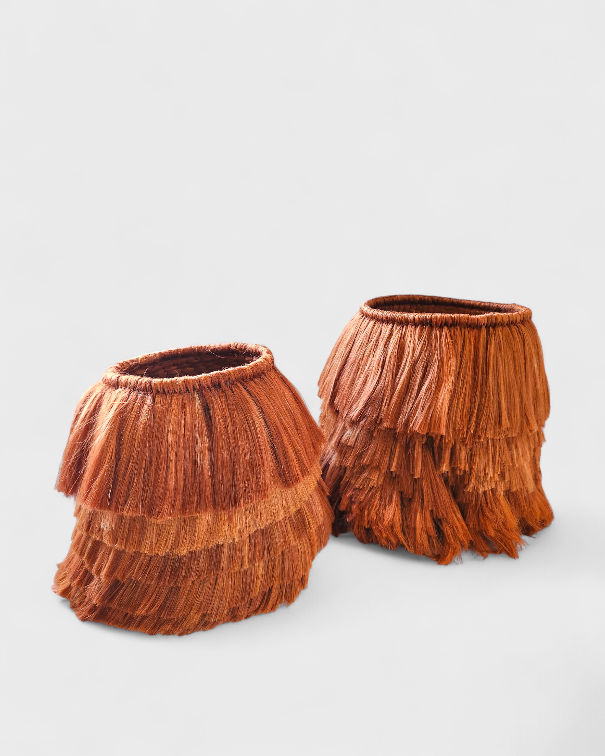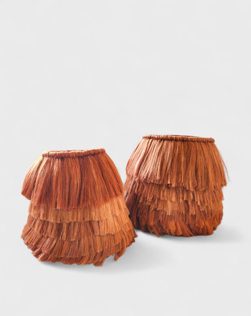 Os cestos da coleção Encantarias celebram o encontro entre design e ancestralidade amazônica. Criados em colaboração com o designer Sergio Matos e produzido pela Copamart, é feito à mão com fibra de malva, cultivada às margens do Rio Solimões. Cada peça guarda a força da floresta e a magia dos encantados que, segundo a tradição ribeirinha, transformam tudo que tocam. Secas ao sol e tingidas artesanalmente, as fibras se entrelaçam em camadas que revelam memória, identidade e poesia. [Cód. 3217]