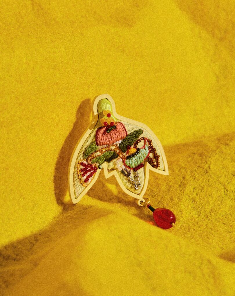 A Cuadró participa da primeira curadoria do projeto Artiz com brincos bordados manualmente em linho misto, jacquard e tafetá, com aplicações de miçangas, canutilhos e cristais. Cada peça é finalizada com pino e tarraxa banhados em ouro 18k ou prata 1000. As peças são vendidas individualmente, permitindo composições únicas. [Cód. 2885]