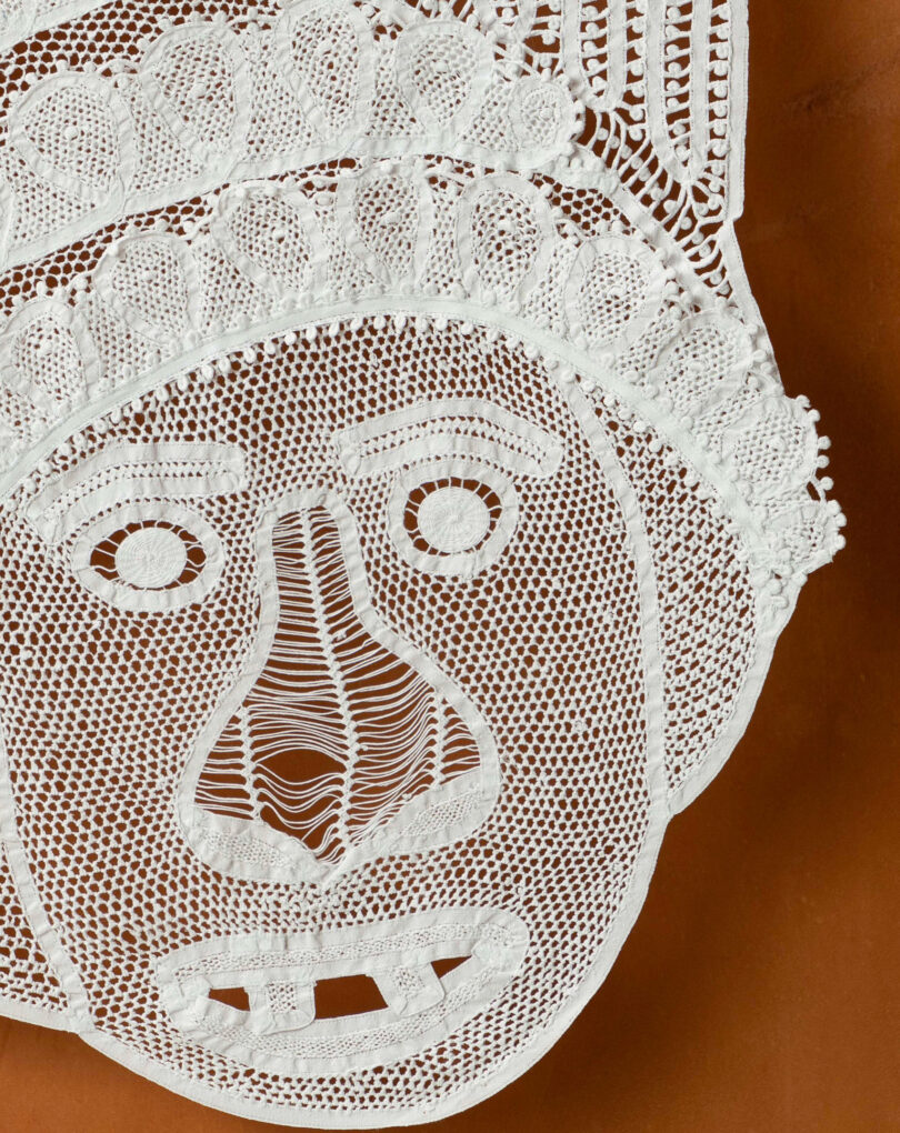 Para o projeto Artiz, foram produzidas pelas Rendeiras da Aldeia três máscaras em renda renascença inspiradas no universo do Cavalo-Marinho. As peças retratam personagens emblemáticos da brincadeira popular: Mané Taião, o gago irreverente que provoca risos com sua comicidade escatológica; Negro Mateus, o palhaço que encena uma crítica aos estereótipos raciais; e Pisa Pilão, o trabalhador de engenho que dança simulando o pisar do milho ao ritmo das toadas. Confeccionadas com renda 100% algodão em base de cobre e couro.